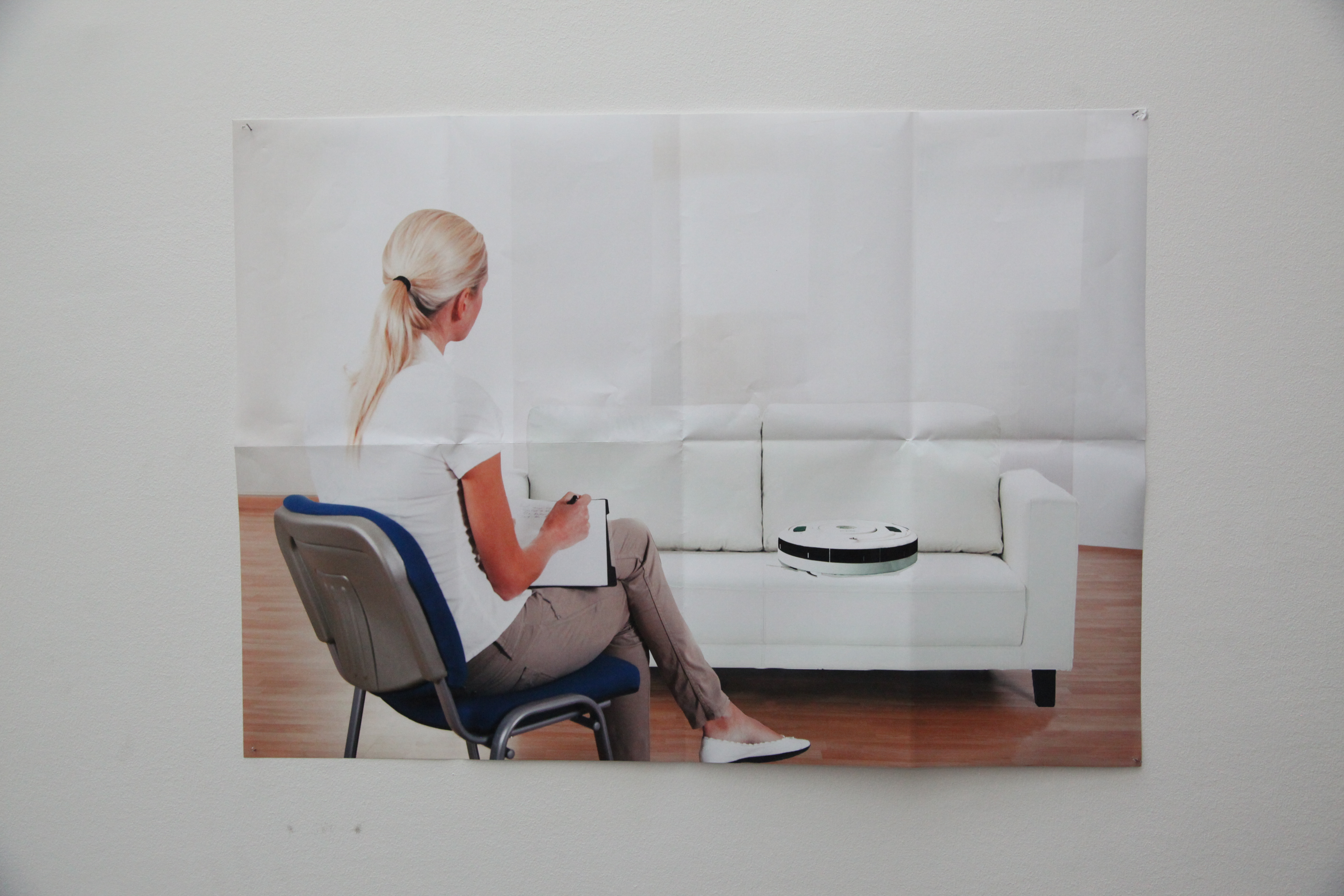 Inspiré de faits divers où des aspirateurs robots outrepassent les lois d’Azimov, ce dispositif met en scène une zone de confort permettant à l’objet de travailler sur ces propres défaillances et limites. Cette installation a été réalisée en collaboration avec la psychanalyste M. Bregeau